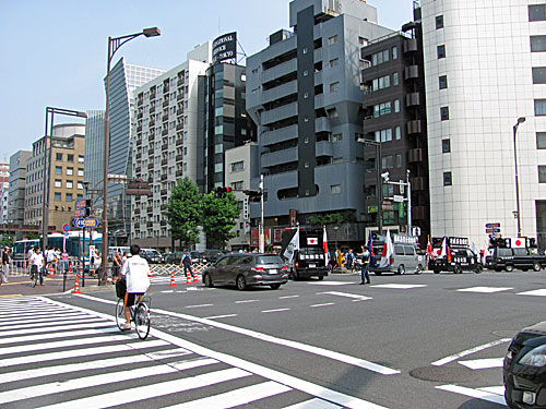 右翼の街宣車が大挙して韓国大使館に抗議に来てました。