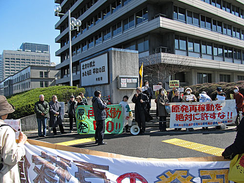 中央合同庁舎4号館北門前にて、原子力安全委員会・大飯審査書第5回検討会に対して、横断幕を掲げてアピールしました。