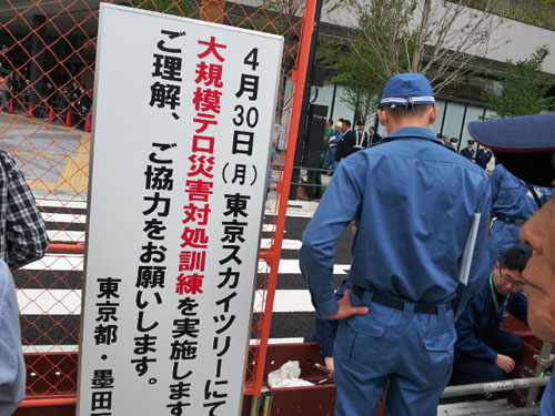 今日は「米軍・自衛隊参加の東京都総合防災訓練に反対する荒川・墨田・山谷&足立実行委」の皆さんの監視行動に同行して、東京スカイツリータウンに「平成24年度大規模テロ災害対処訓練」を観光に行きました。