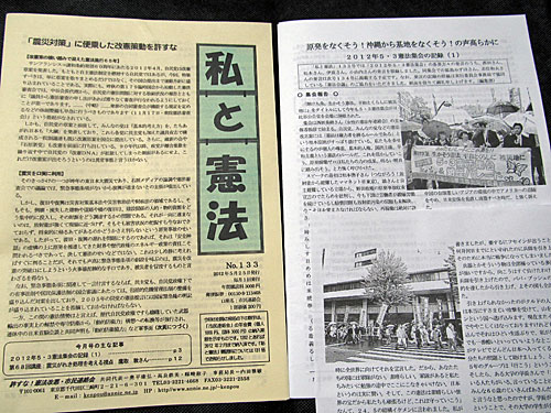 「私と憲法」No.133(5/25発行)が届いてました。
