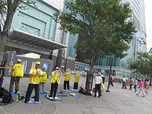 すぐ並びでは法輪功のおじさん・おばさんたちが気功をしてました。
