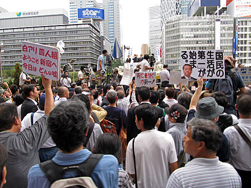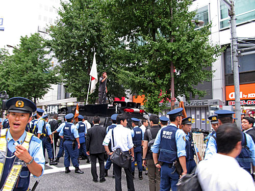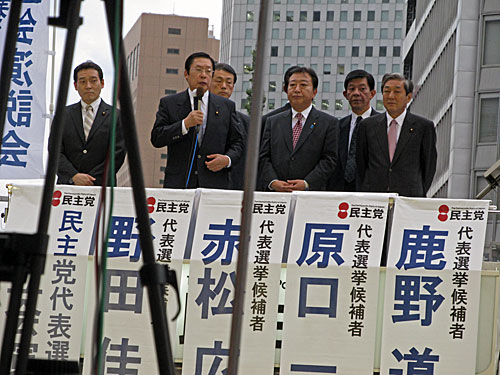 原口は沖縄に行ってて、今日の演説会は欠席とか。