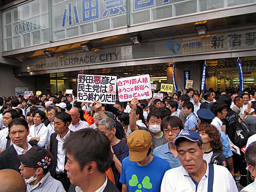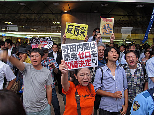 候補者3人の演説中、ずっと「帰れ!帰れ!」「原発やめろ!」の大合唱が響いてました。