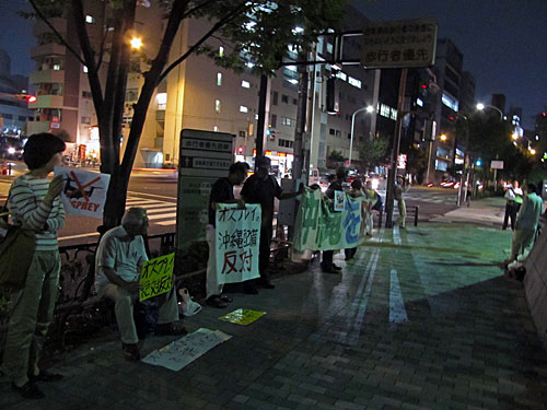 週明けにも予想されるオスプレイの沖縄配備に反対する個人有志による防衛省前連続抗議です。