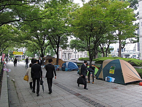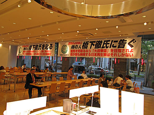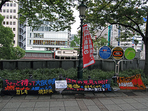 がーん。江坂店と天王寺店と北と南の2店を探訪しましたが、どちらも横断幕ありませんでした(泣)。