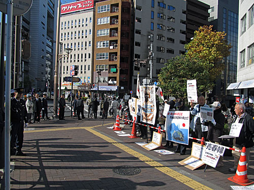帰り道、新宿通りを自転車で走ってたら、韓国大使館近くの交差点にこんな人たちが。