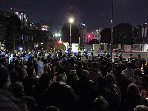今夜はいつもと順番を変えて、首相官邸「裏」→文科省前→経産省前→国会正門前→首相官邸前とまわりました。