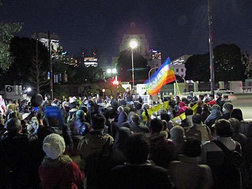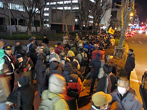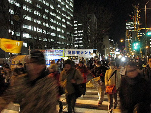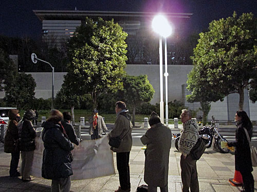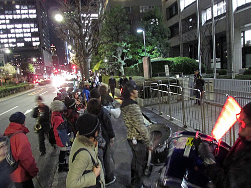 今夜は、首相官邸「裏」→文科省前→経産省前→環境省前→国会正門前→首相官邸前とまわりました。