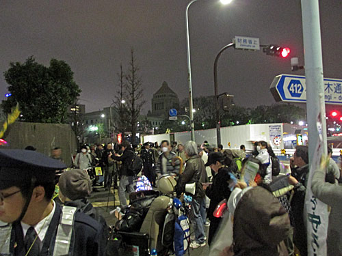 今夜は、首相官邸「裏」→経産省前→国会前→首相官邸前→経産省前とまわりました。