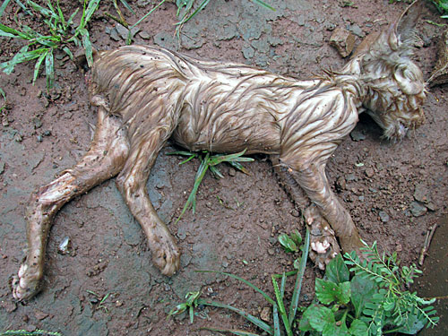 プラザ・スナヤンの前の路上で、雨に打たれて死にかけてたネコ(?)ちゃんです。