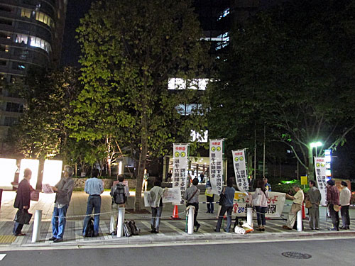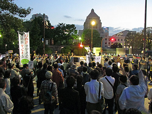 今夜は、首相官邸「裏」→経産省前→国会前→首相官邸前→原子力規制委員会前とまわりました。