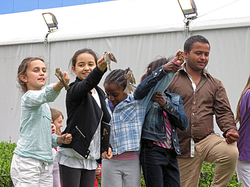 ノートル・ダム大聖堂の前の広場というか公園で小鳥と戯れる少女たちです。