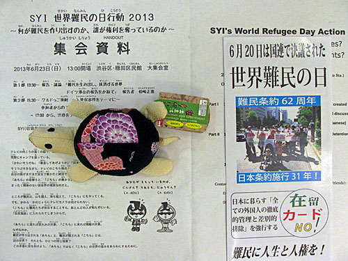 「SYI 世界難民の日行動 2013」でかわいいカメさんをいただきました。