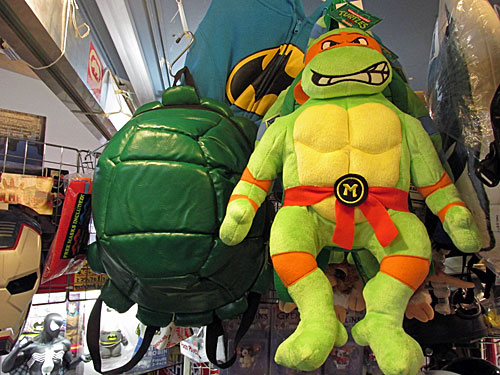 本多劇場の隣りのヴィレッジヴァンガードに忍者タートルズ(Teenage Mutant Ninja Turtles)のリュックを2種類3匹売ってました。