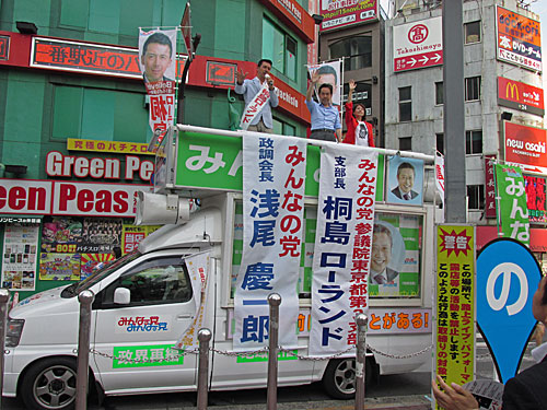 時間が前後しますが、夕方4時30分頃、新宿駅東南口、桐島ローランド候補です。