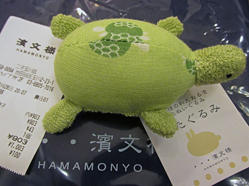 二子玉川で小さなカメのぬいぐるみ(「和たぐるみ」)を見つけて買いました。1個903円。