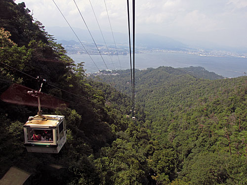 ロープウェイで獅子岩駅へ、そこから山道を約30分登って弥山(みせん)山頂へ。