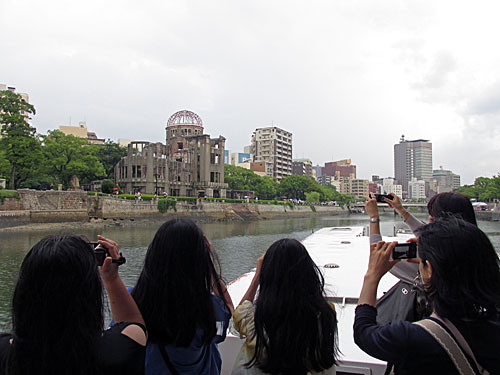 宮島から平和公園へ向かう船のデックから撮影した原爆ドームです。