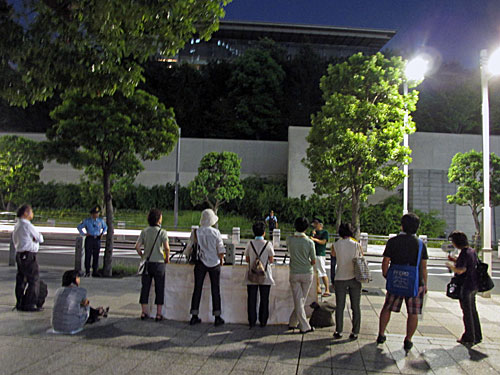今夜は、経産省前→国会前→首相官邸前→首相官邸「裏」→原子力規制委員会前とまわりました。
