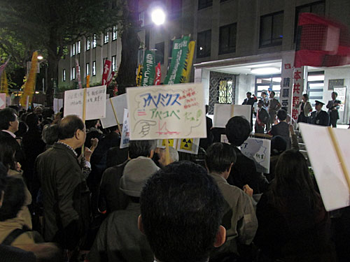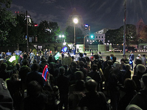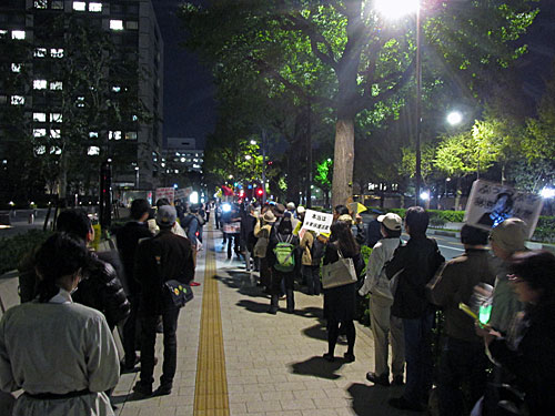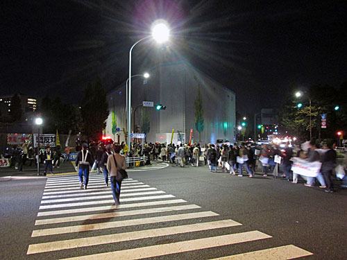 今夜は、経産省前→国会前→首相官邸前→議員面会所前→議員会館前→首相官邸前とまわりました。