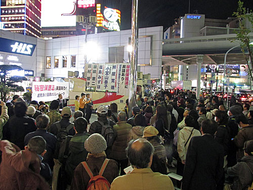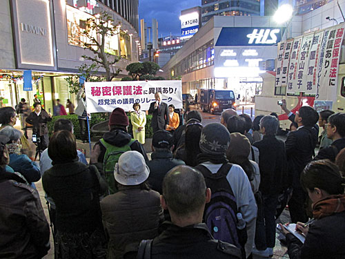 1枚目は有田芳生議員、2枚目は福島みずほ議員がマイクを握ってます。