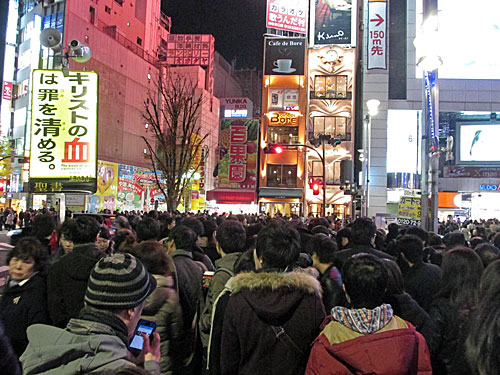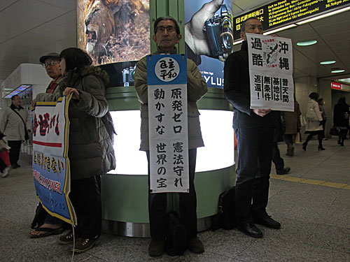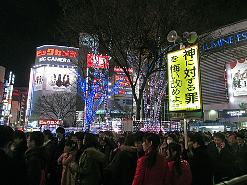 黄色いキリスト看板、昼に「秘密保護法廃止!デモ。」で新宿を歩いてるとき、この冬、初めて見ました。