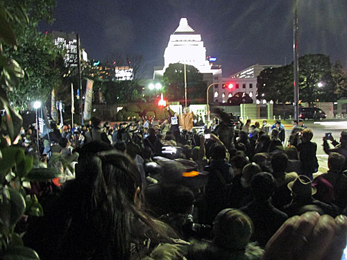 今夜は、新橋駅前→経産省前→国会前→首相官邸前→首相官邸「裏」とまわりました。