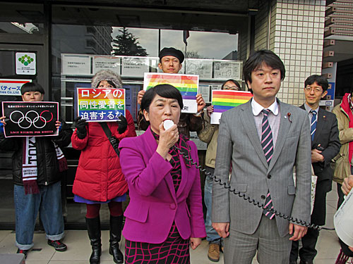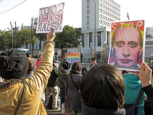 東京マラソン2014 ロシア大使館前反同性愛法抗議