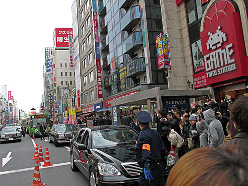 靖国通りで待ってたら、安倍晋三、ちらりとだけ見えました。