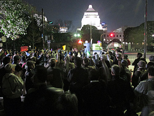 今夜は、経産省前→国会前→首相官邸前→首相官邸「裏」とまわりました。