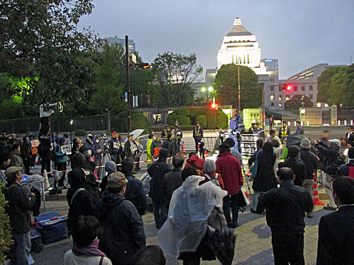 今夜は、経産省前→国会前→首相官邸前とまわりました。