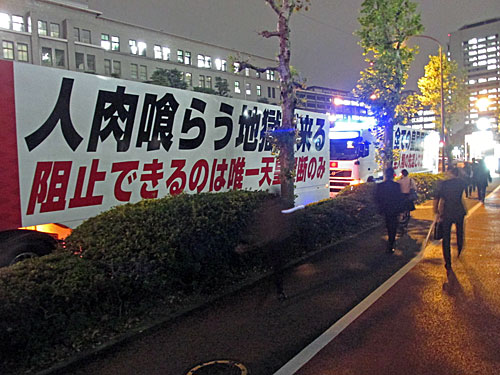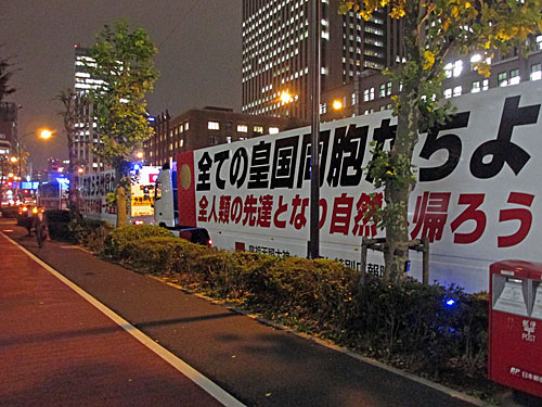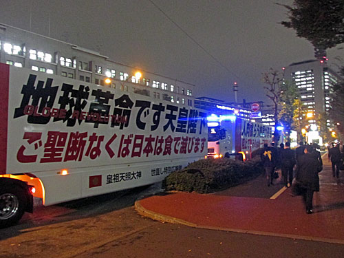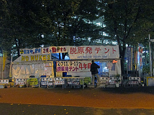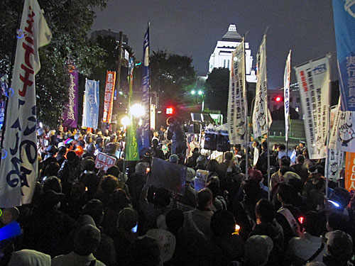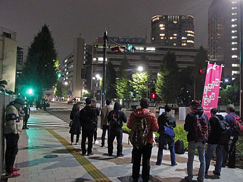 今夜は、経産省前→国会正門前→国会図書館前→議員会館前→自民党本部前とまわりました。