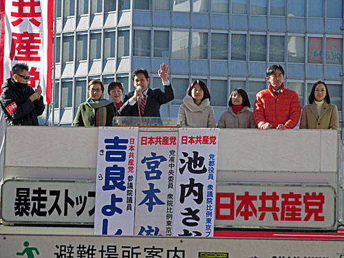 参加は、宮本徹&池内さおり新衆院議員はじめ、比例5候補、吉良よし子参院議員。