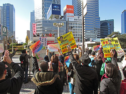 午後1時から新宿駅西口で日本共産党の選挙結果報告・街頭演説がありました。