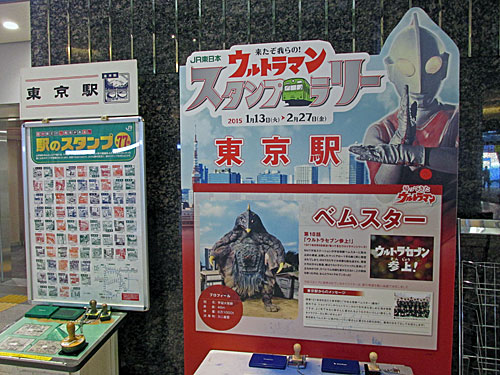 ウルトラマンスタンプラリー、今日は東京駅ベムスター(16個目)だけでした。あと48駅!