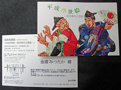 京橋のギャルリー東京ユマニテで富田菜摘展「平成浮世絵-役者舞台之姿絵-」を見てきました。