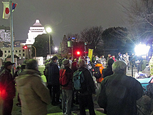 今夜は、経産省前→文科省前→国会前→首相官邸前→首相官邸「裏」とまわりました。
