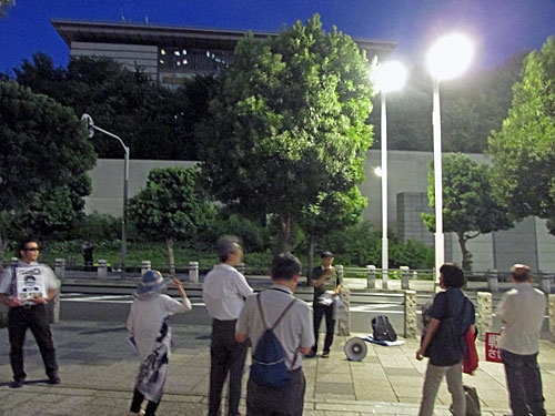 今夜は、経産省前→関電東京支社前→国会前→首相官邸前→首相官邸「裏」→国会前とまわりました。