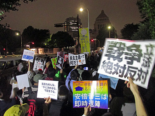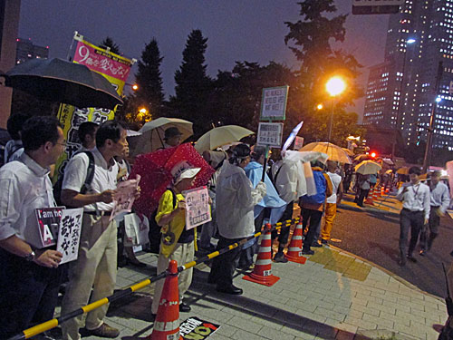 今夜は、経産省前→国会前→首相官邸前→首相官邸「裏」→国会前→参議院議員会館前とまわりました。