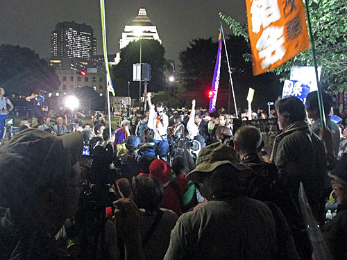 今夜は、経産省前→国会前→首相官邸前→経産省前→国会前とまわりました。