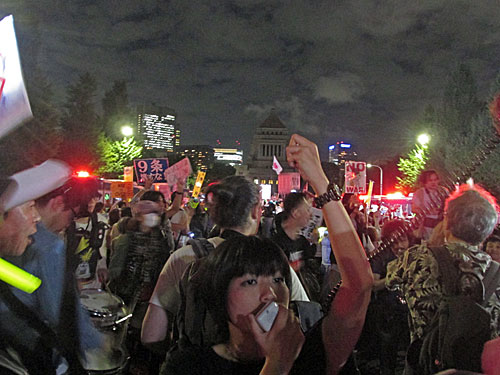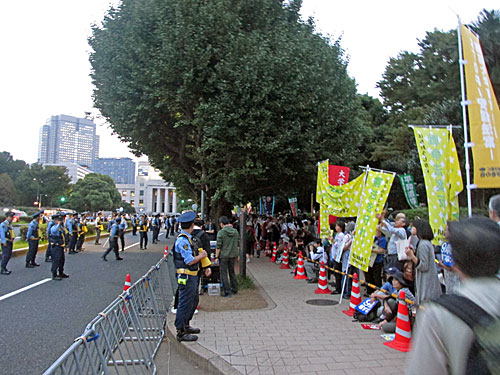 このあと有楽町に夕飯を食べにちょっと抜けたら、その間に国会前の路上が開放されてました。