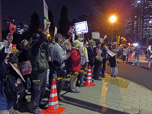 今夜は、経産省前→国会前→首相官邸前→首相官邸「裏」とまわりました。