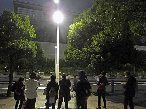 今夜は、経産省前→国会前→首相官邸前→首相官邸「裏」とまわりました。