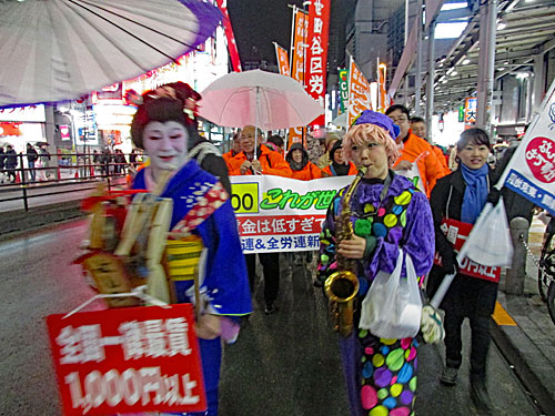 どこまで事前に打ち合わせしてたのかわかりませんが、ちんどん屋さんや新宿西口で情宣してた人たち(東京春闘・東京地評?)は「最賃1000円以上」を掲げててちょっとちぐはぐな感じもありました。