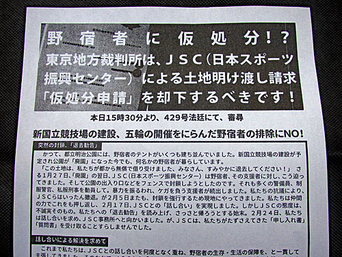 オリンピック追い出しヤメロ|国立競技場周辺で暮らす野宿生活者を応援する有志