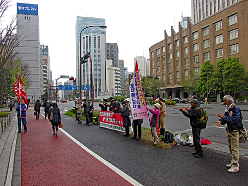 そのあと外苑前交差点での情宣に少しだけ参加しました。