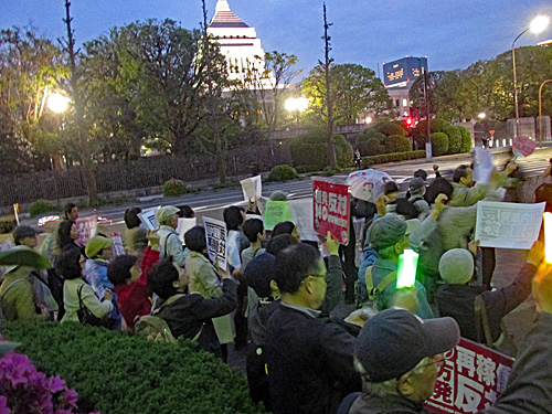 今夜は、経産省前→国会前→首相官邸前→首相官邸「裏」→原子力規制委員会前とまわりました。