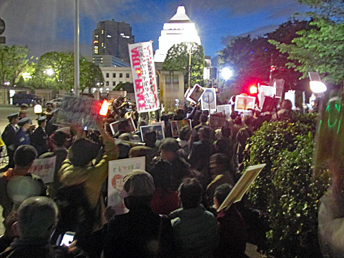 今夜は、経産省前→国会前→首相官邸前とまわりました。