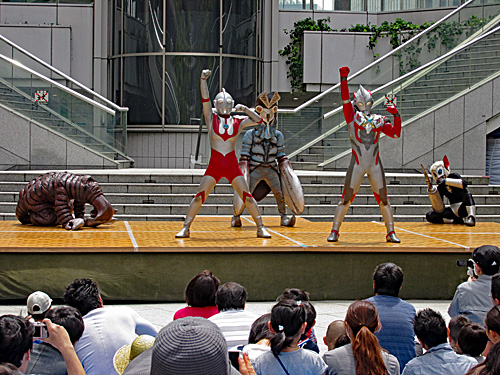 有明防災公園へ行くのに、品川シーサイド駅からりんかい線に乗ろうと思ったら、歓声が聞こえてきて、見に行ったら、オーバルガーデンでウルトラマンエックスショーをやってました。