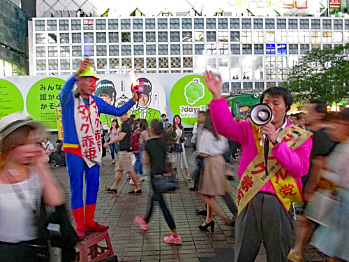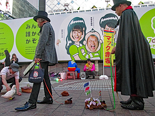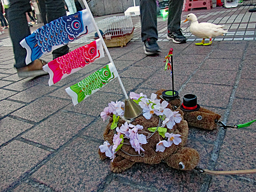 渋谷駅前でマック赤坂の真っ赤なスポーツカーを見つけてハチ公前を覗いてみたら、亀の子束子のカメを連れた手品師みたいなおじさんがいました。